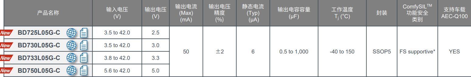 全球知名半导体制造商ROHM(总部位于日本京都市)开发出支持高达45V的额定电压、50mA输出电流的一次侧*1LDO稳压器*2(以下简称“LDO”)“BD7xxL05G-C系列”(BD725L05G-C、BD730L05G-C、BD733L05G-C、BD750L05G-C),该系列产品非常适用于各种冗余电源*3,用于车载应用中,可提高车载电源系统的可靠性。