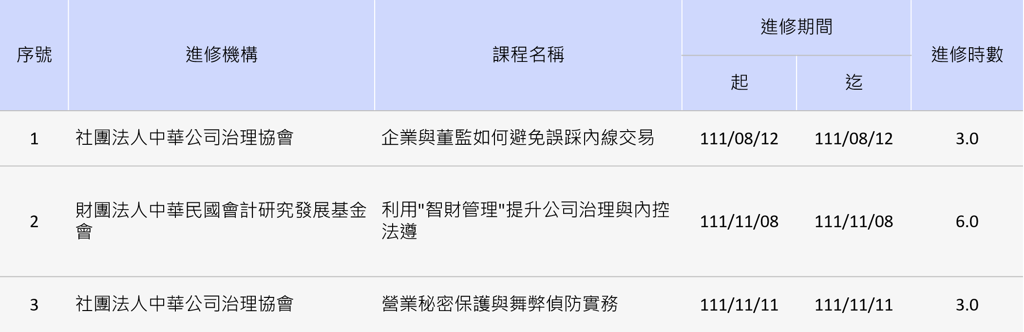 本公司為落實治理,促使董事會發揮應有職能,以維護投資人權益,已於110年03月22日董事會決議通過委任財務長尤淑儀為公司治理主管乙職,其具備從事公開發行公司財務主管達三年以上之經驗, 並依法令規定進行專業進修。