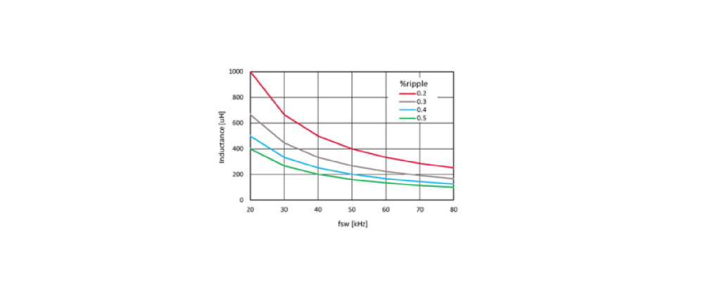 電感越大,電流紋波就越小。但是,較大的電感會導致成本的增加。只要∆IL/2小於%ripple/2,PFC就能維持CCM運行。因此,有必要在成本和性能方面選擇最佳電感量。圖1顯示了CCM PFC所需的電感量與開關頻率的關係。圖中顯示,在較高的開關頻率下,電感變得更小。一旦頻率超過60kHz,電感就會足夠小,可以放在主機板上