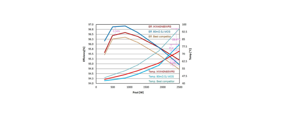 結果顯示,在整個負載範圍內,IKW40N65WR5 IGBT的效率和熱性能都優於競爭對手的IGBT。