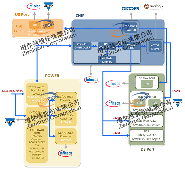 PD capability of US Type-C port : 5V@3A, 9V@3A, 15V@3A, 20V@3A.
