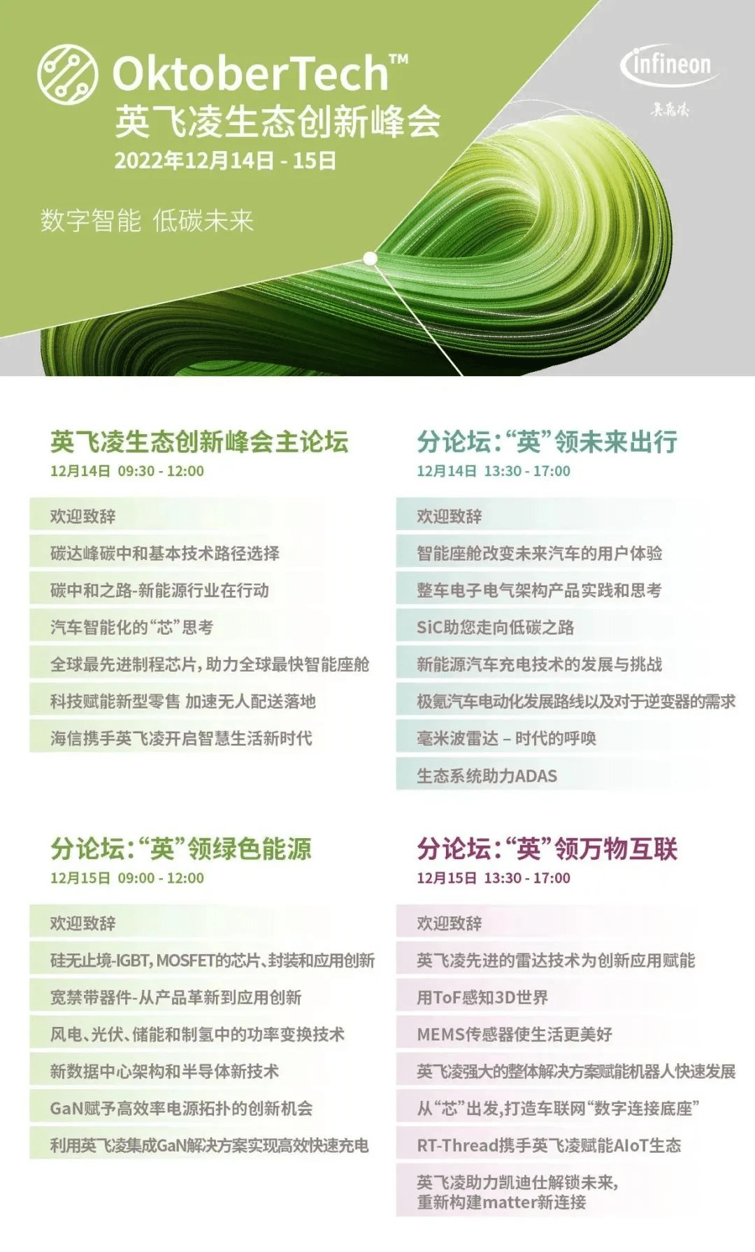 继2022年1月英飞凌大中华区首届生态圈大会成功举办之后,OktoberTech™英飞凌生态创新峰会将于2022年12月14-15日与您相约云端!