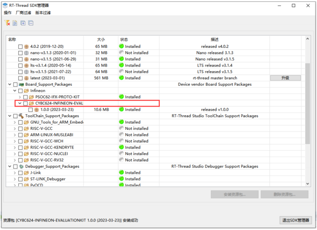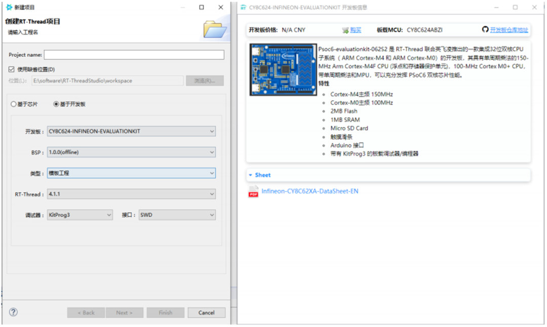 PSoC 6 RTT开发板默认集成 KitProg3-DAP-Link 调试器。KitProg3 是用于编程和调试的通信固件。适用于 ModusToolbox™、PSoC™ 和其他软件生态系统的编程解决方案。
