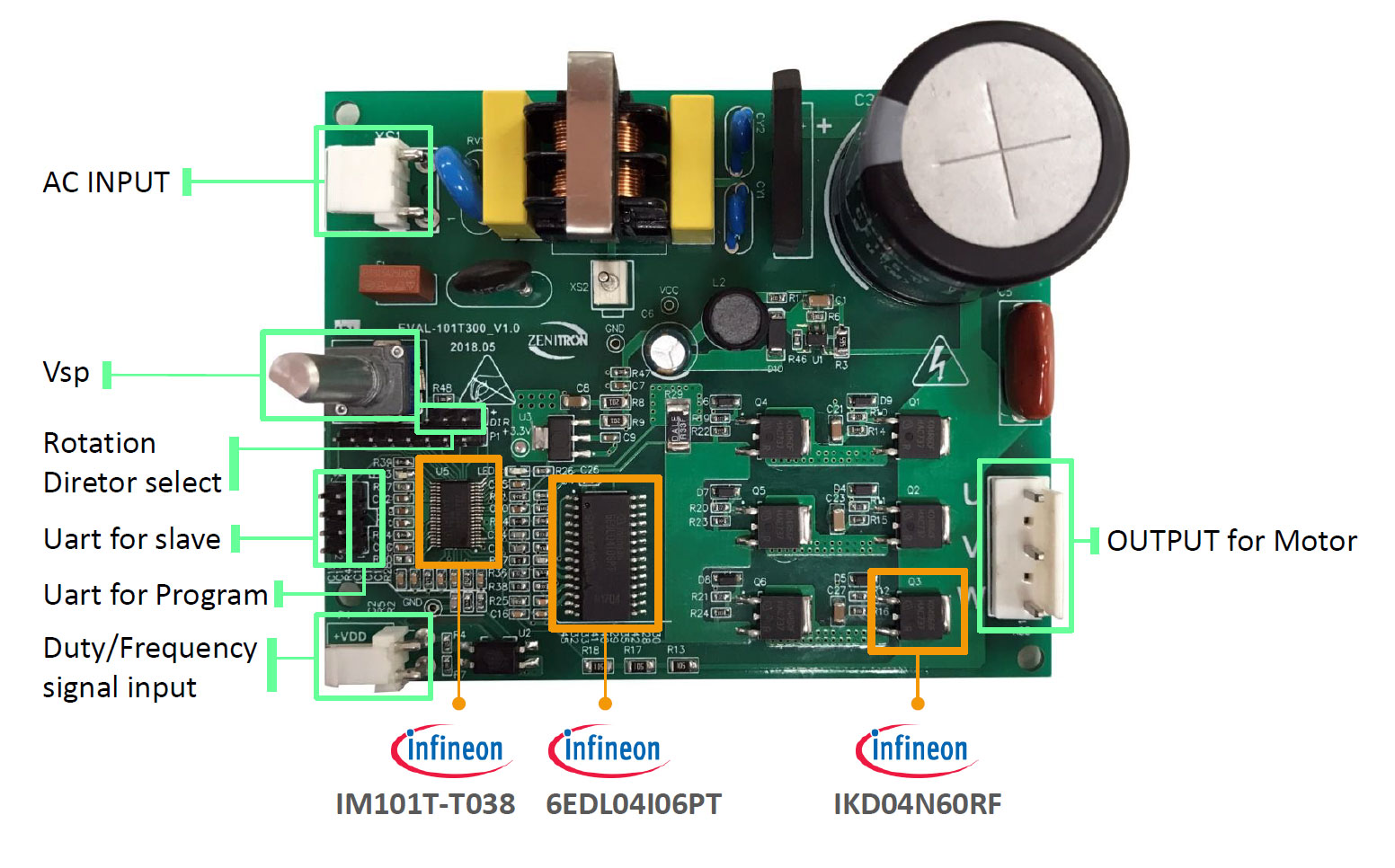 Zenitron Sensor less field oriented control (FOC) motor drive evaluation board
