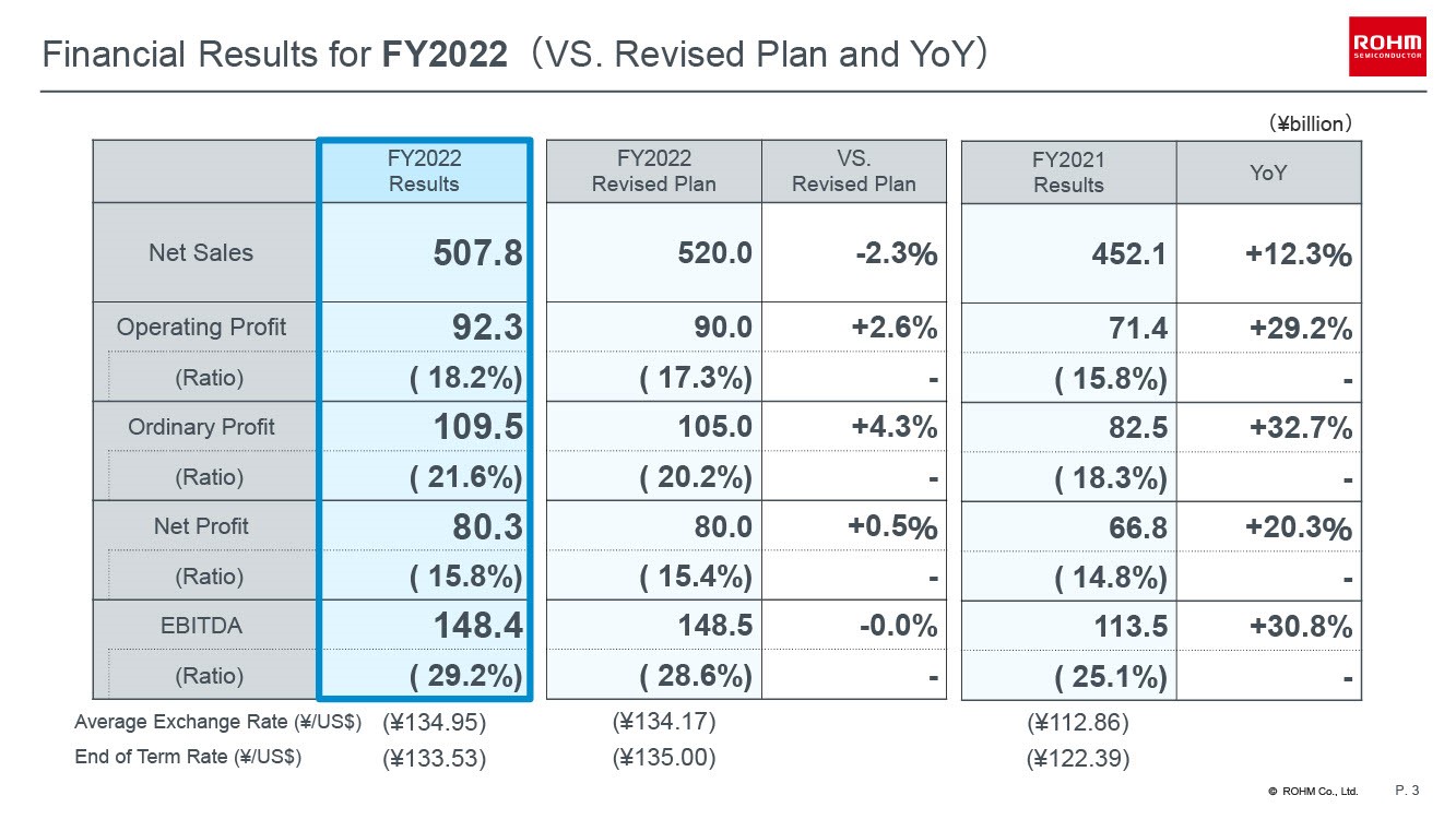 半導體製造商ROHM(總公司:日本京都市)公佈了2022年度(2022年4月-2023年3月)的財報,詳細資訊請參閱下列網頁: